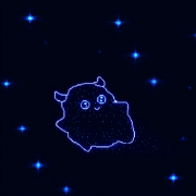 A sleepy pixel pup wandering the midnight buffer. Tap the sky to stitch constellations.